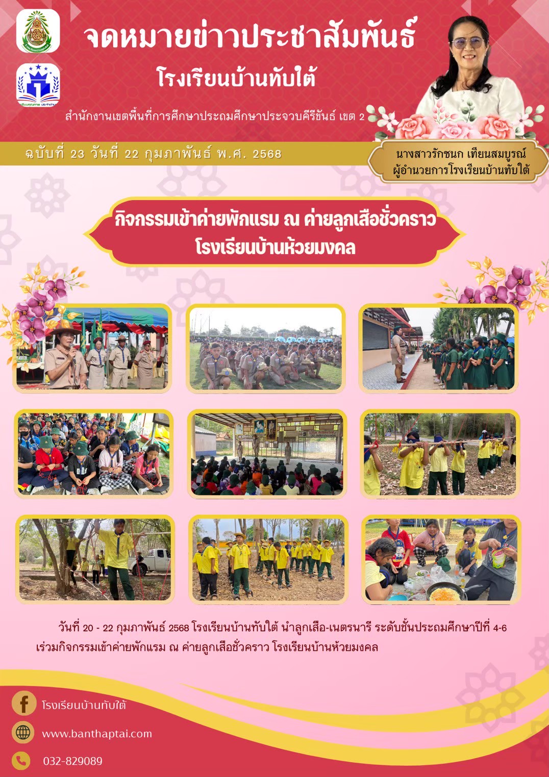 กิจกรรมเข้าค่ายพักแรม ณ ค่ายลูกเสือชั่วคราว โรงเรียนบ้านห้วยมงคล