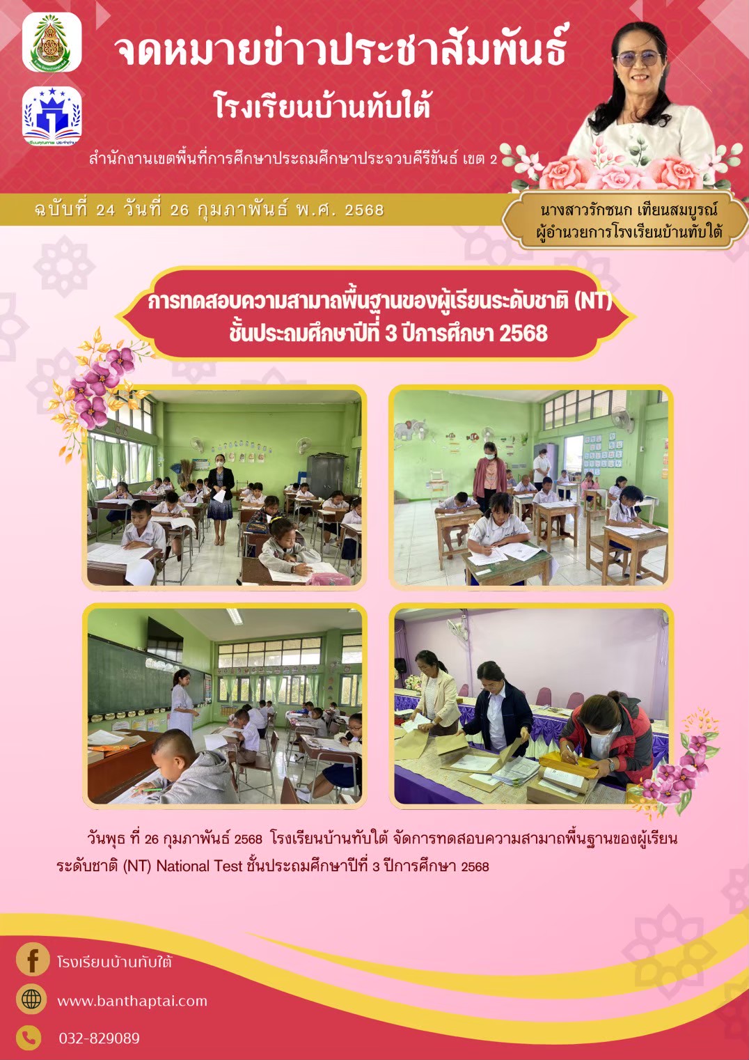 การทดสอบความสามาถพื้นฐานของผู้เรียนระดับชาติ (NT) ชั้นประถมศึกษาปีที่ 3 ปีการศึกษา 2568