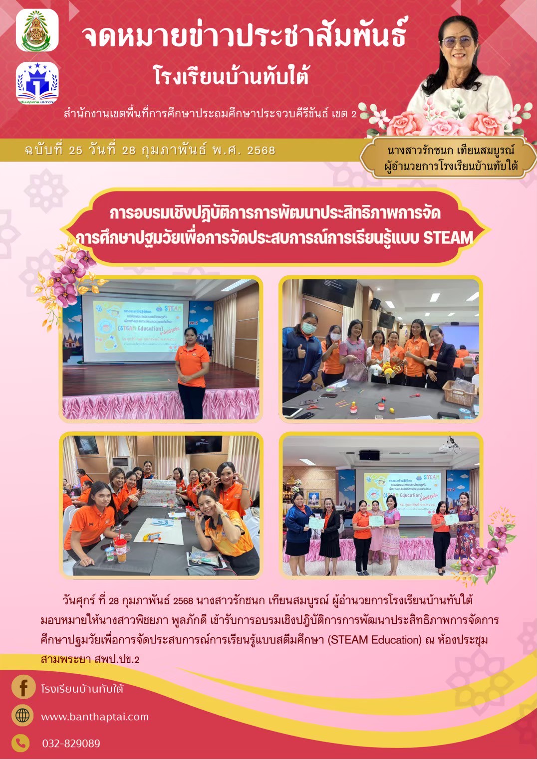 การอบรมเชิงปฎิบัติการการพัฒนาประสิทธิภาพการจัด การศึกษาปฐมวัยเพื่อการจัดประสบการณ์การเรียนรู้แบบ STEAM