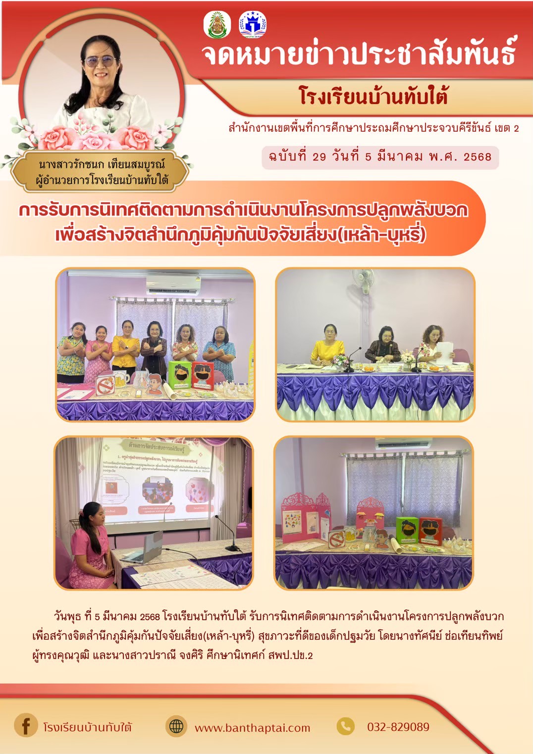 การรับการนิเทศติดตามการดำเนินงานโครงการปลูกพลังบวกเพื่อสร้างจิตสำนึกภูมิคุ้มกันปัจจัยเสี่ยง(เหล้า-บุหรี่)