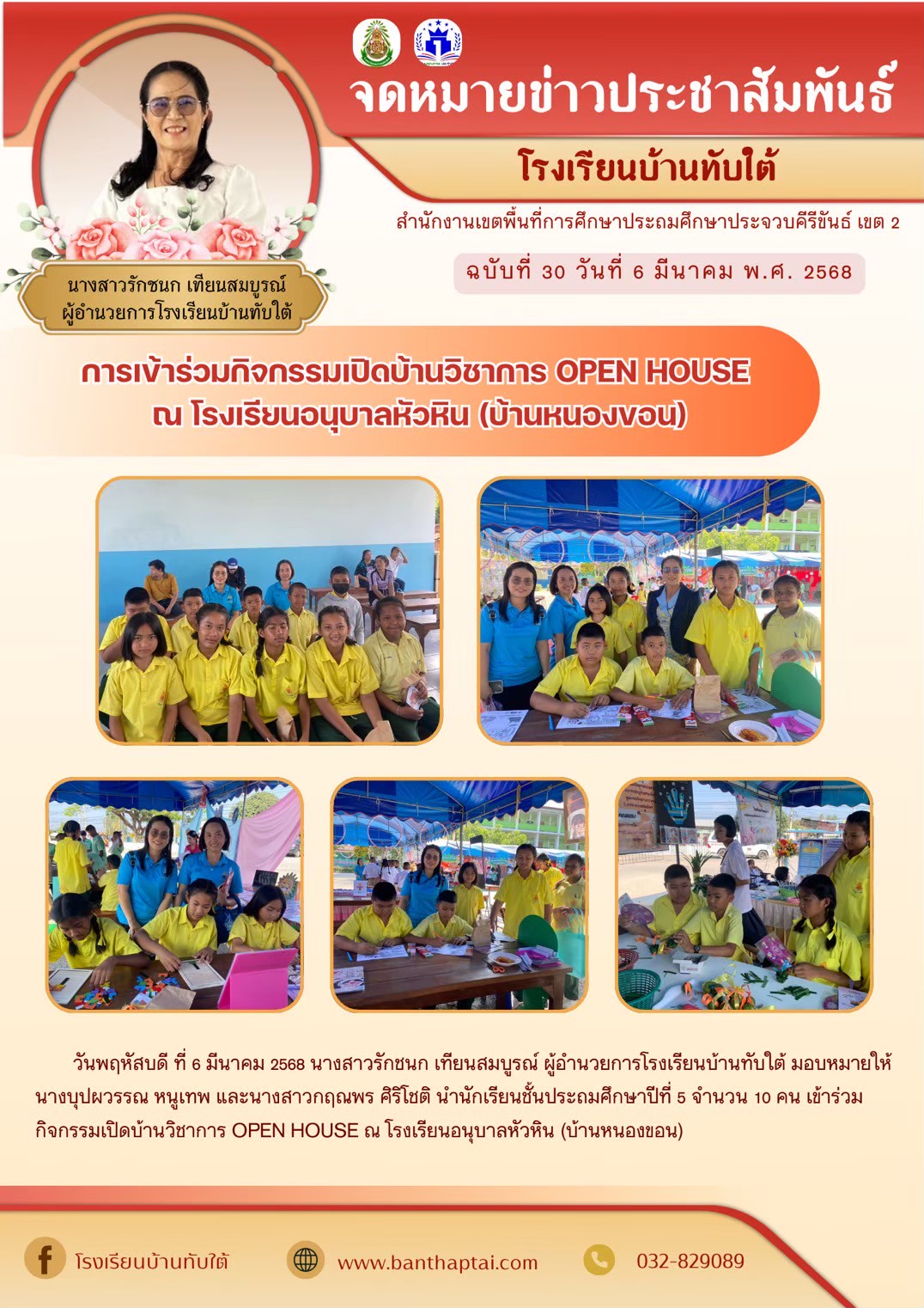 การเข้าร่วมกิจกรรมเปิดบ้านวิชาการ OPEN HOUSE ณ โรงเรียนอนุบาลหัวหิน (บ้านหนองขอน)