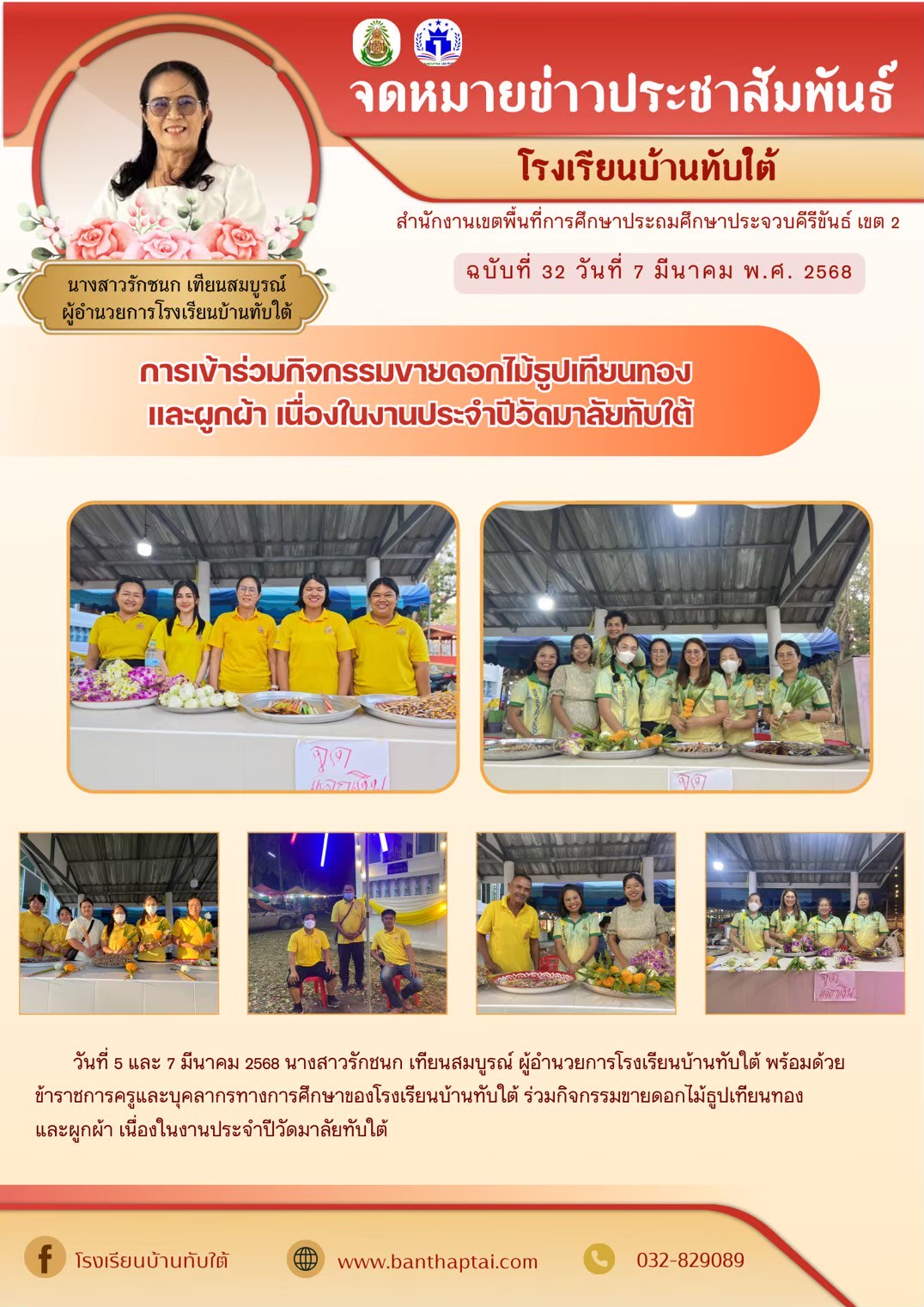 การเข้าร่วมกิจกรรมขายดอกไม้ธูปเทียนทอง และผูกผ้า เนื่องในงานประจำปีวัดมาลัยทับใต้