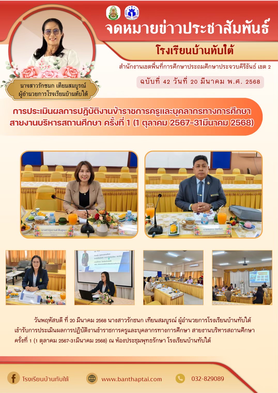การประเมินผลการปฏิบัติงานข้าราชการครูและบุคลากรทางการศึกษา สายงานบริหารสถานศึกษา ครั้งที่ 1 (1 ตุลาคม 2567-31มีนาคม 2568)