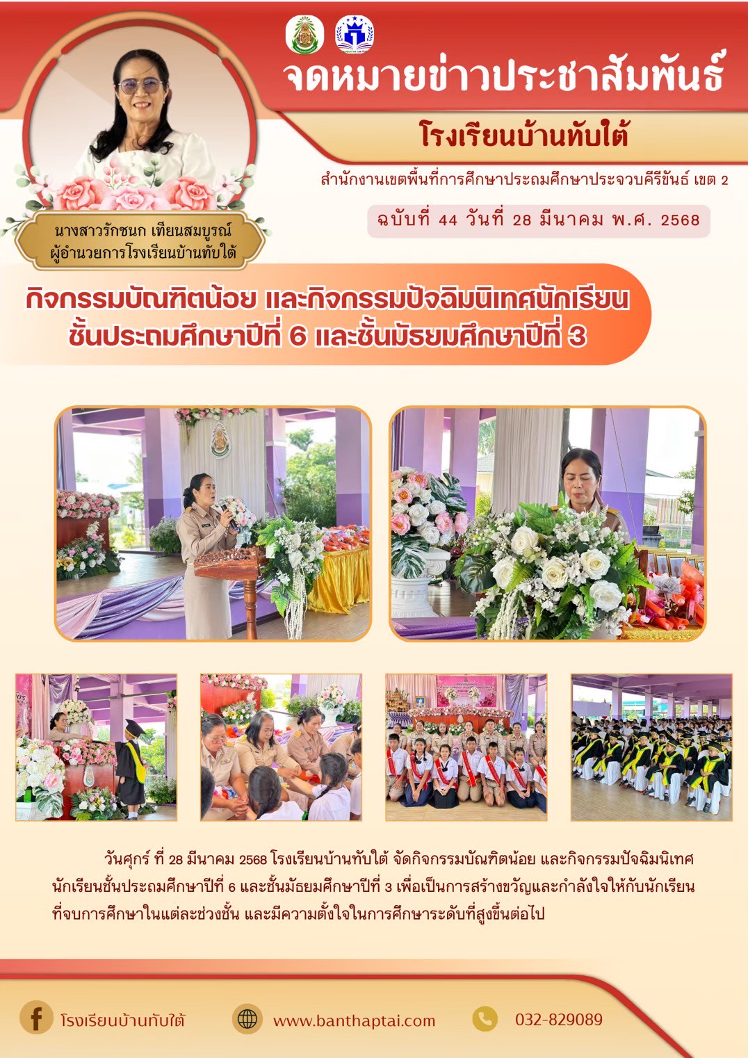 กิจกรรมบัณฑิตน้อย และกิจกรรมปัจฉิมนิเทศนักเรียนชั้นประถมศึกษาปีที่ 6 และชั้นมัธยมศึกษาปีที่ 3