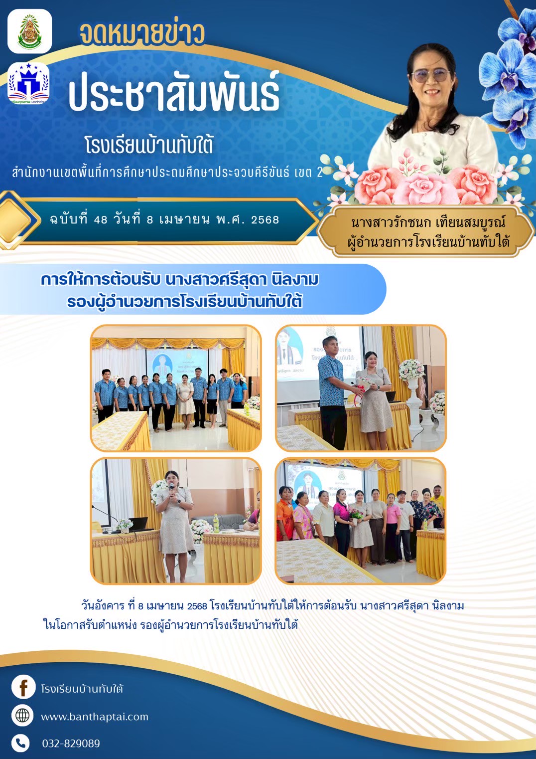 การให้การต้อนรับ นางสาวศรีสุดา นิลงาม รองผู้อำนวยการโรงเรียนบ้านทับใต้